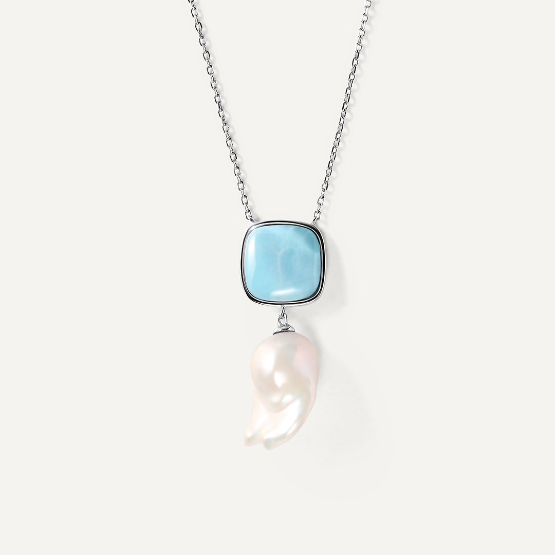 Серебряная подвеска с кораллом и жемчугом на цепи