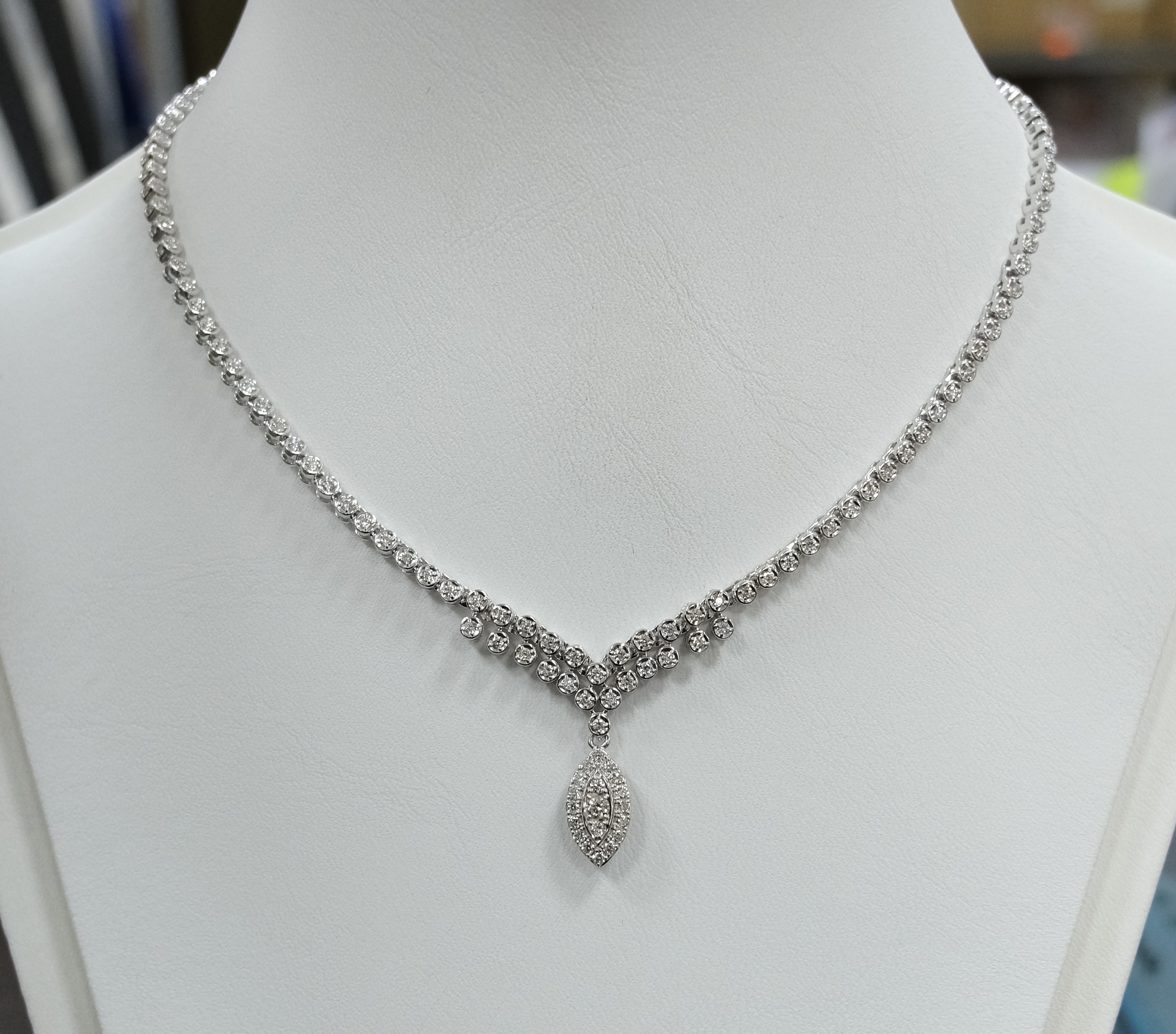 Золотое колье 585 пробы; белое золото; родий; плетение Якорное; вставки 2 Бр.Кр-57 0,039 3/6А; 20 Бр