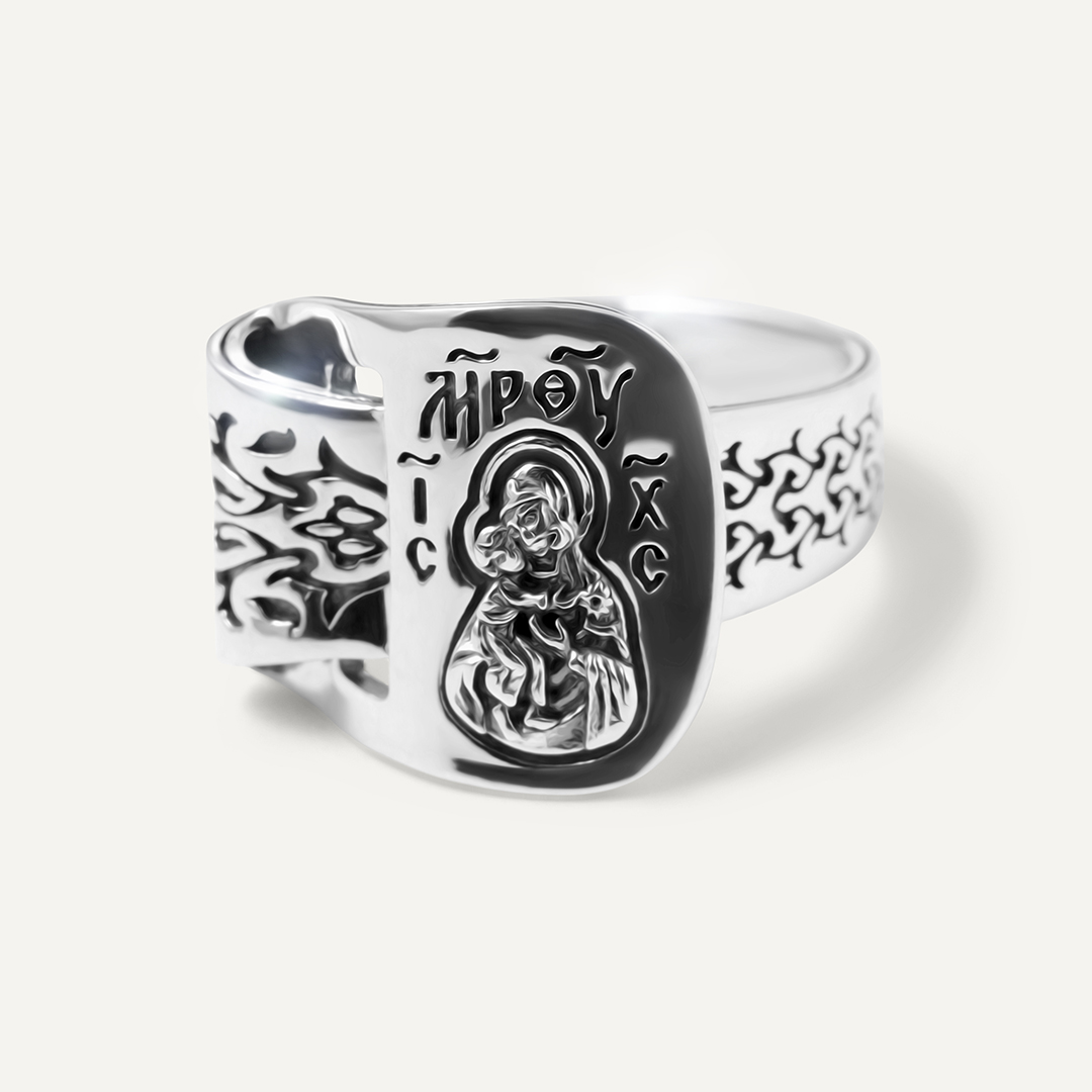 Серебряное кольцо "Феодоровская икона Божьей Матери"