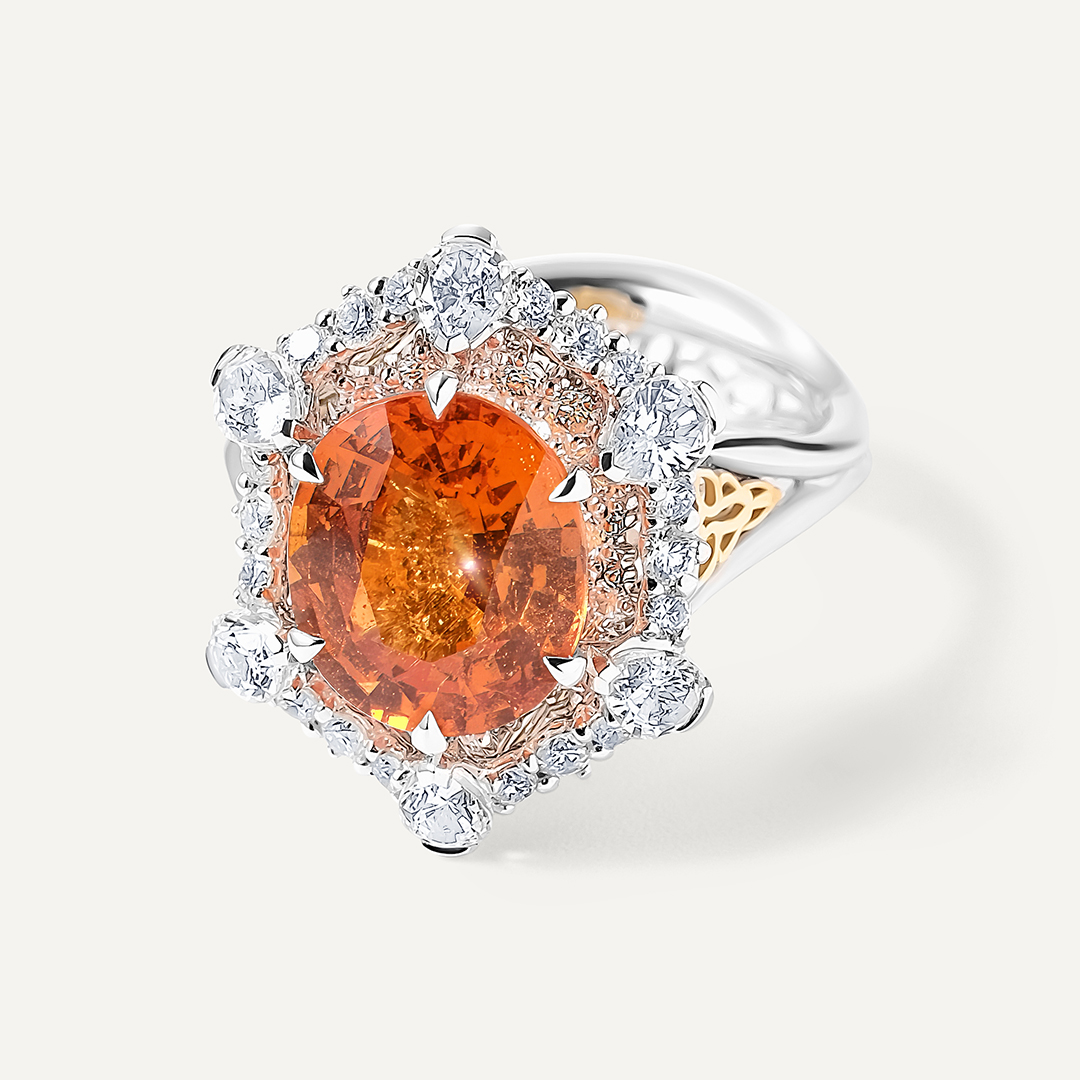 Кольцо из комбинированного золота со спессартином