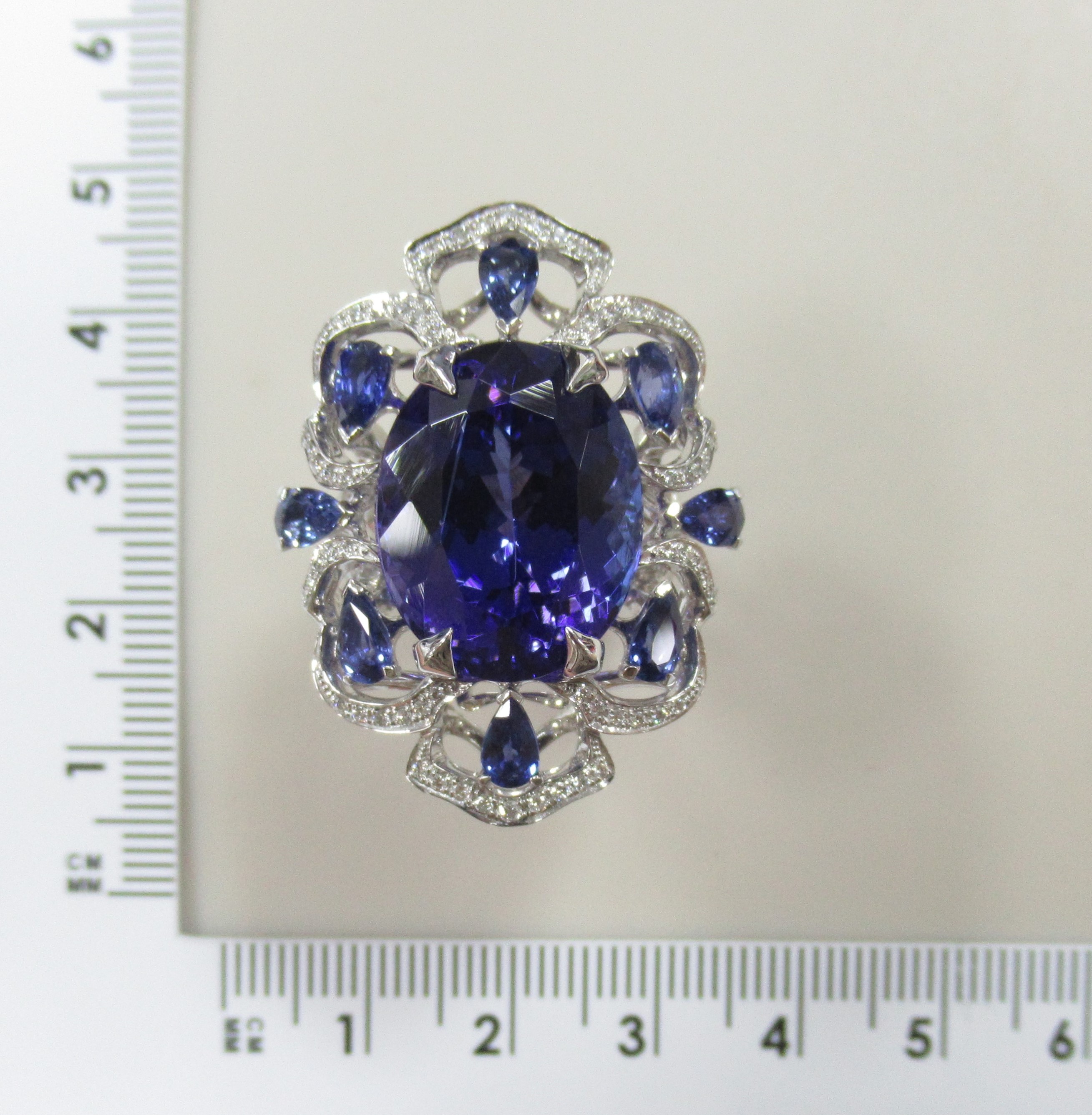 Кольцо из белого золота с танзанитами