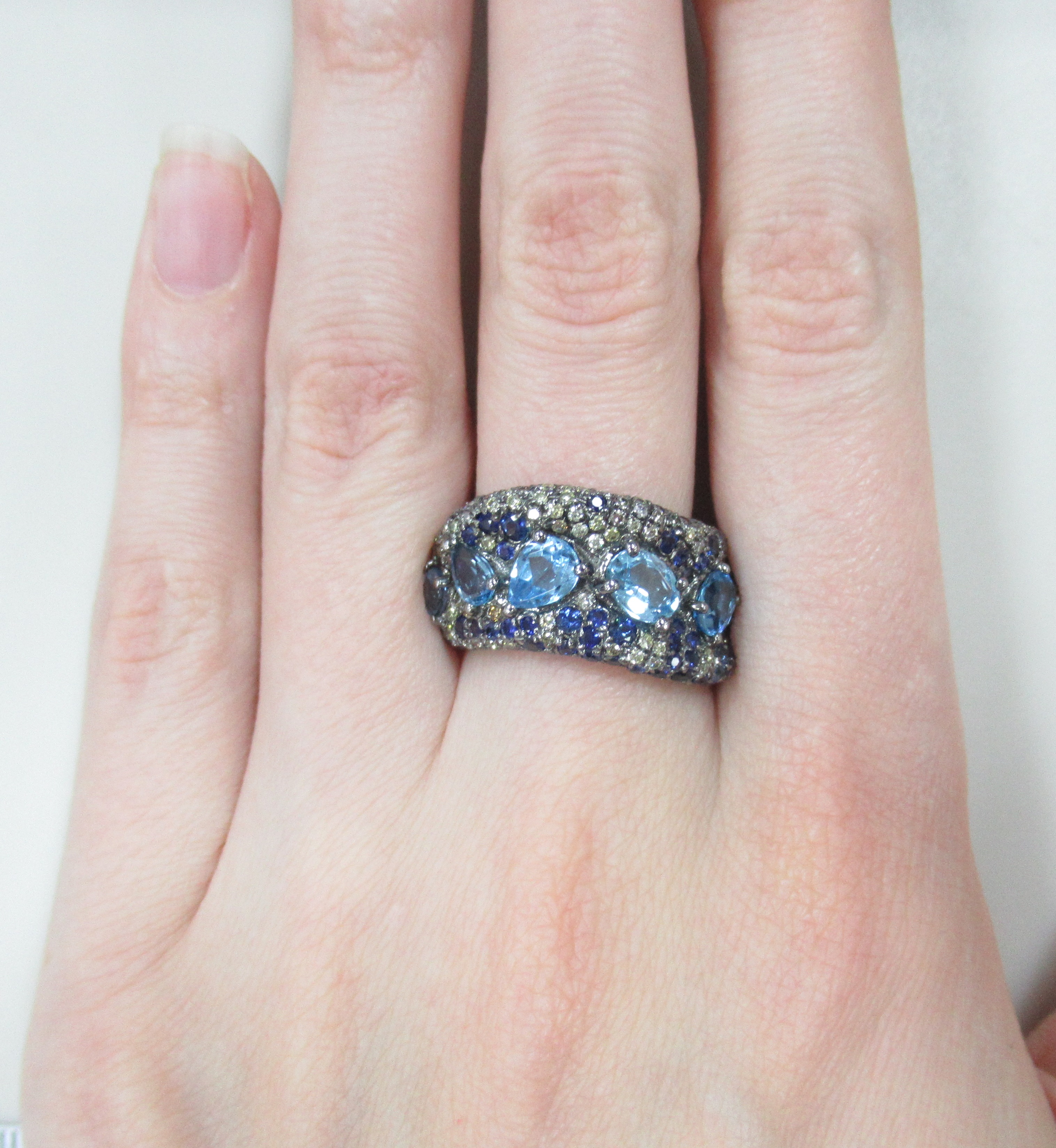 Кольцо из белого золота с желтыми сапфирами и тсаворитами