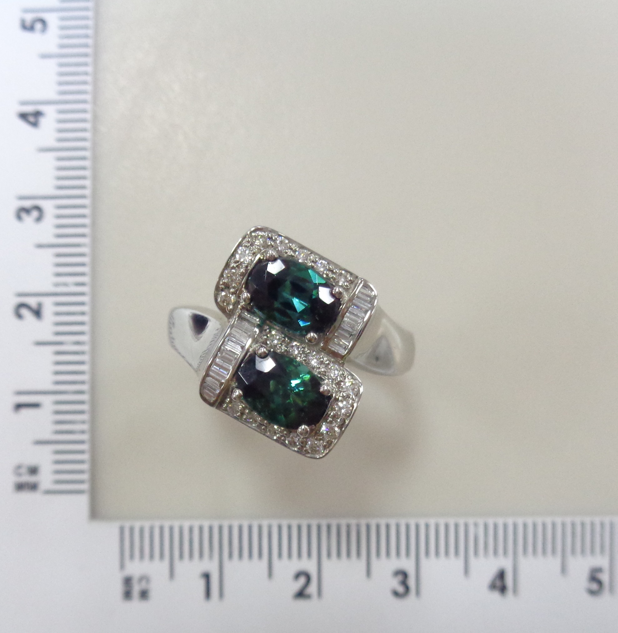Кольцо из белого золота с зелеными бриллиантами "Клевер"