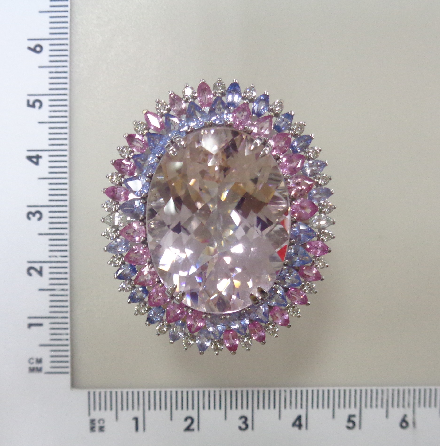 Кольцо из белого золота с изумрудом, сапфирами и рубинами
