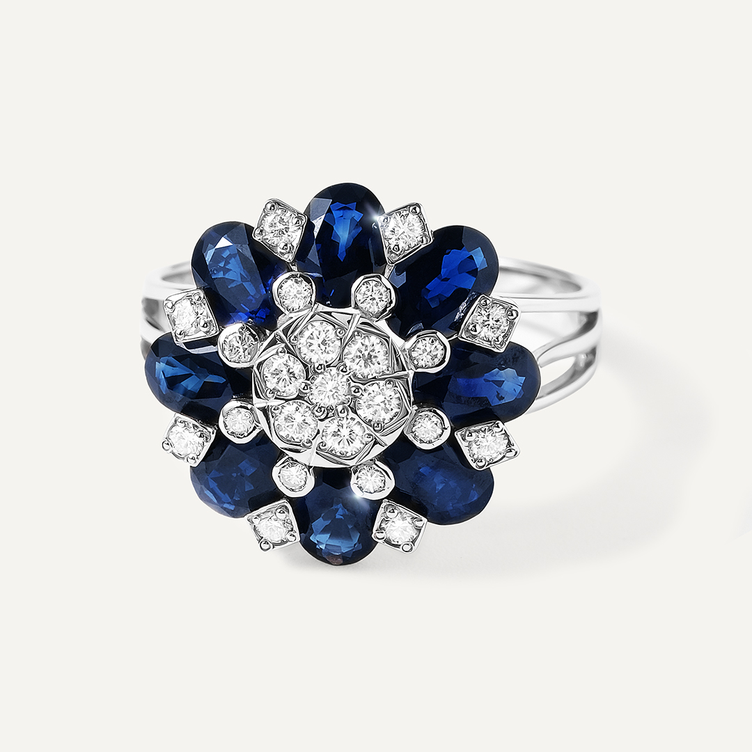 Кольцо из белого золота с сапфирами