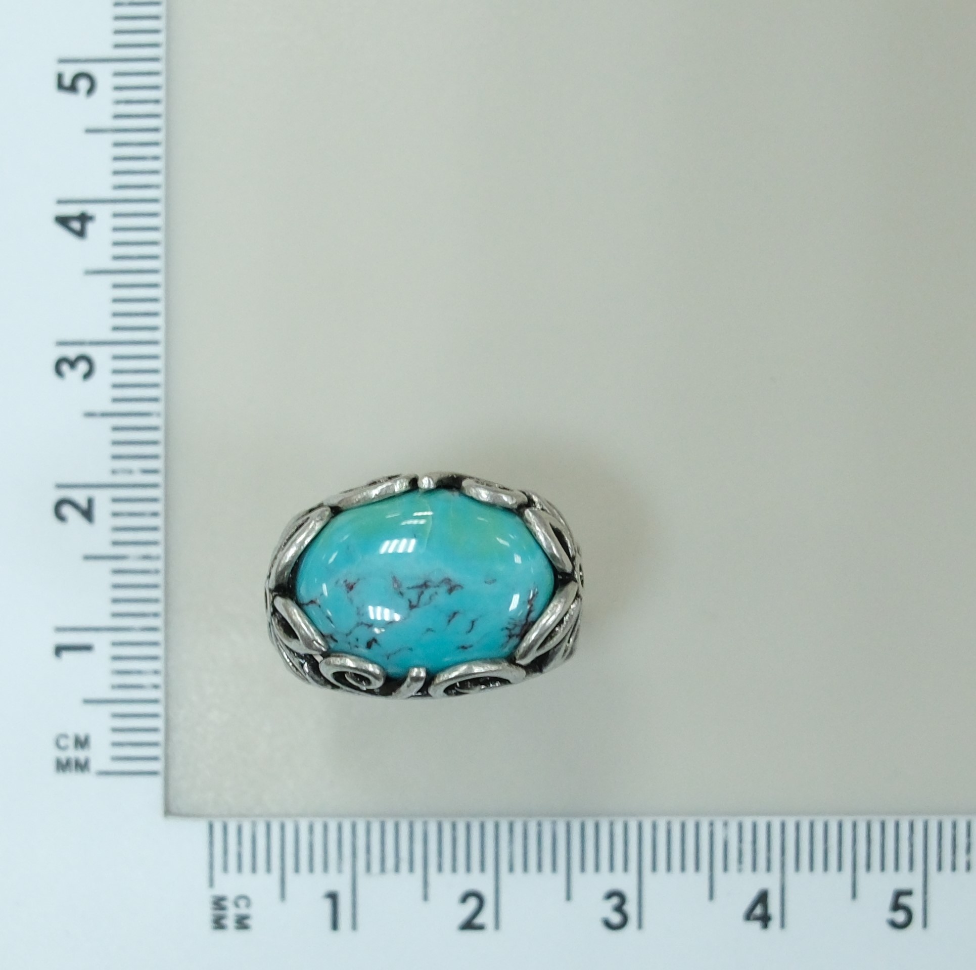 Серебряное кольцо с зеленой бирюзой и турмалинами