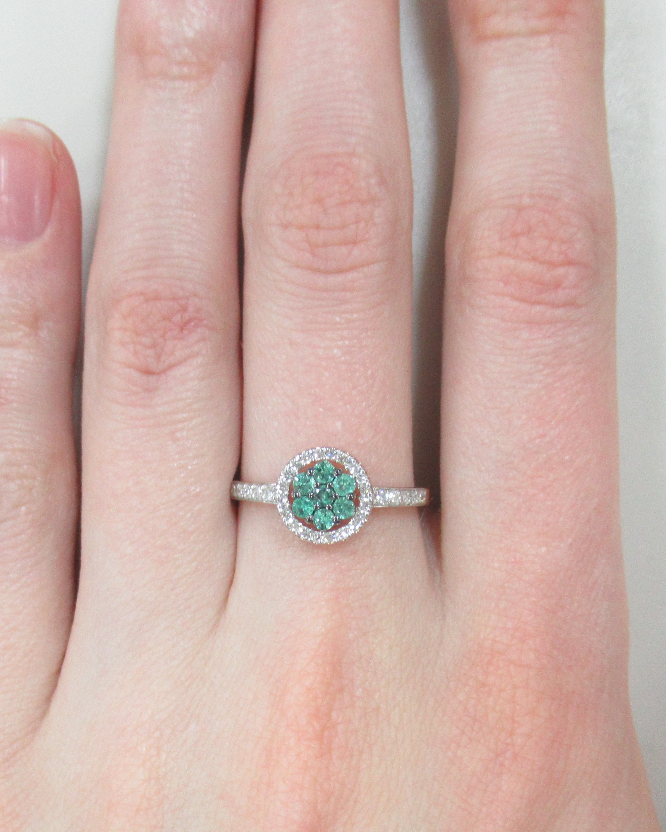 Серебряное кольцо с зеленой шпинелью и керамикой