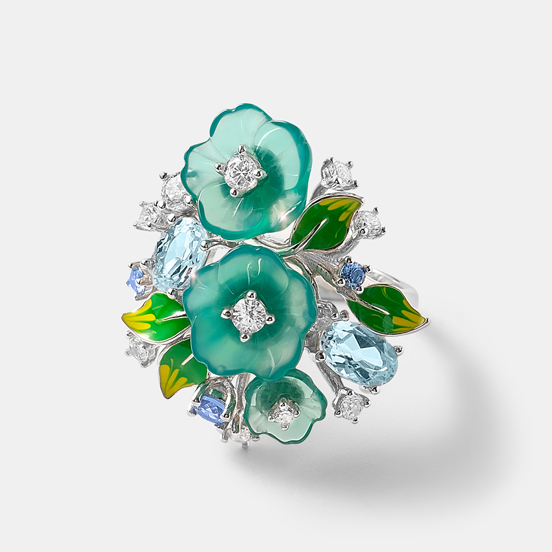 Серебряное кольцо с изумрудами, сапфирами и рубинами