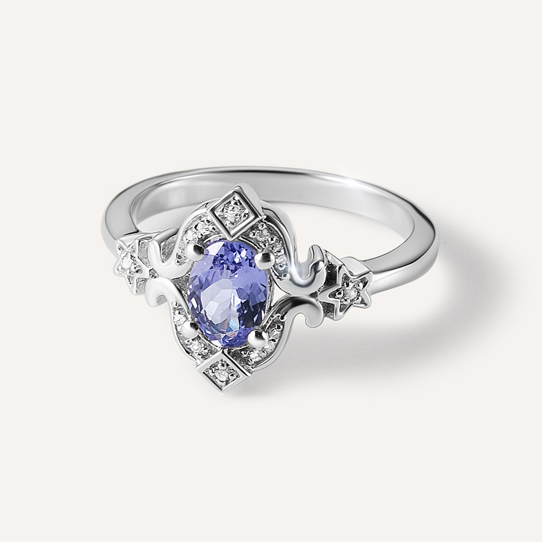 Серебряное кольцо с танзанитом "Цветок"
