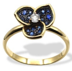 Кольцо из белого золота с иолитами, сапфирами и тсаворитами "Цветы"