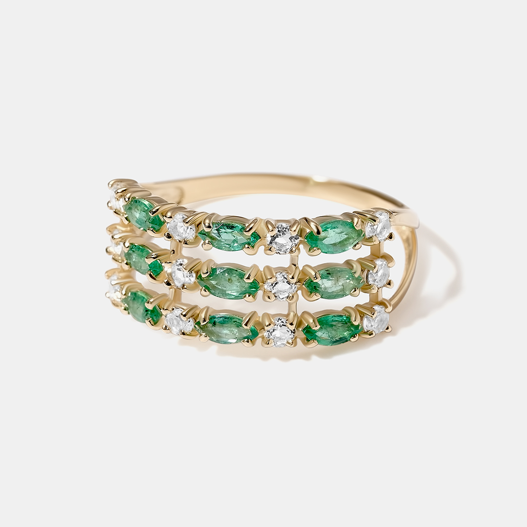 Кольцо из золота с изумрудами и бриллиантами "Клевер"