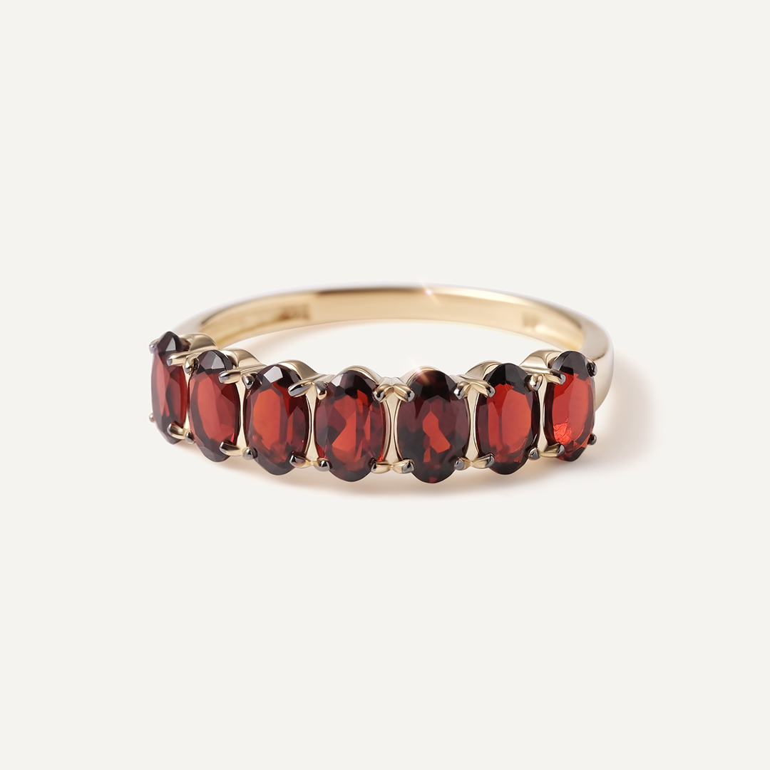 Кольцо из желтого золота с черными турмалинами и гранатами
