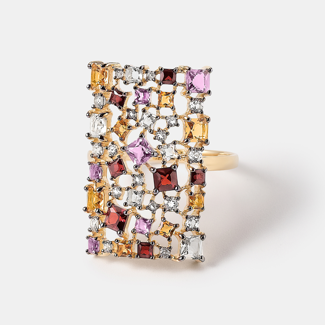 Кольцо из желтого золота с самоцветами