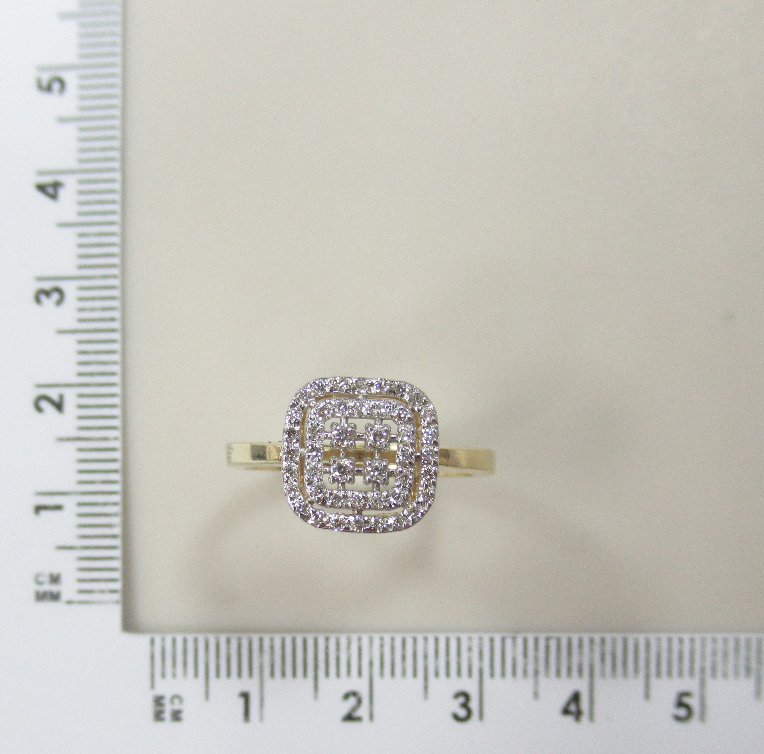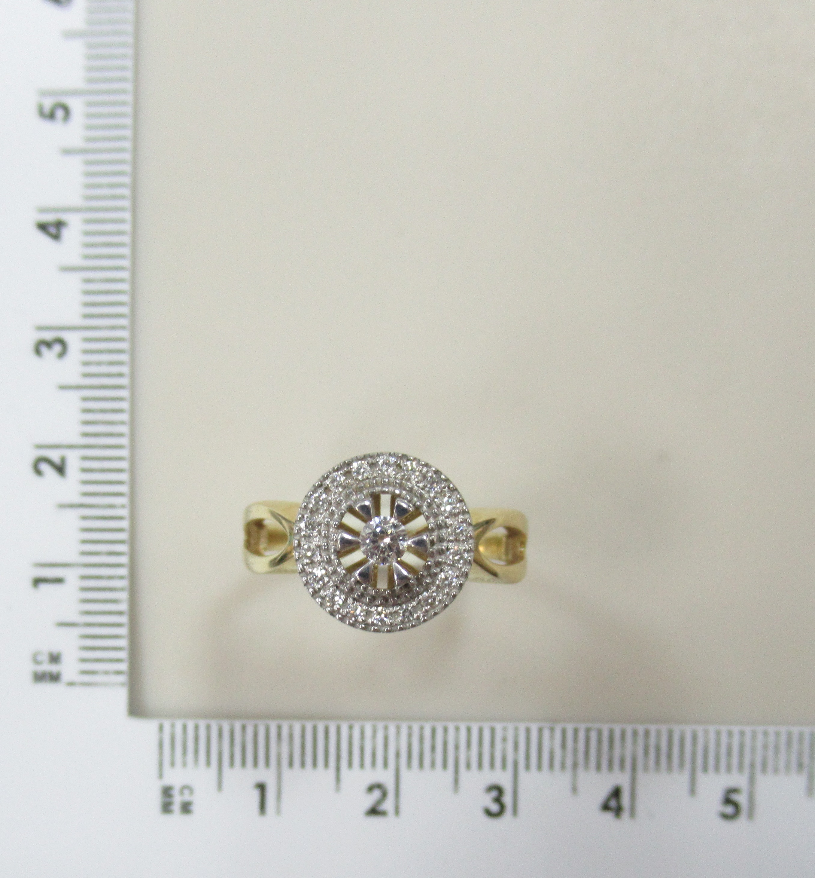 Золотое кольцо 585 пробы; белое, желтое золото; родий; вставки 14 Фианит бесцв.;