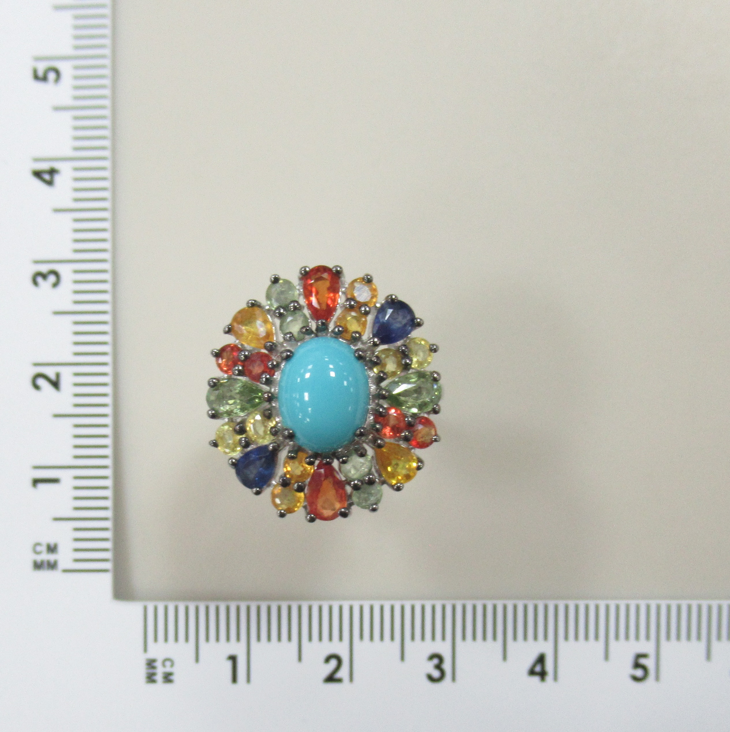 Серебряные серьги с изумрудами, сапфирами и рубина...