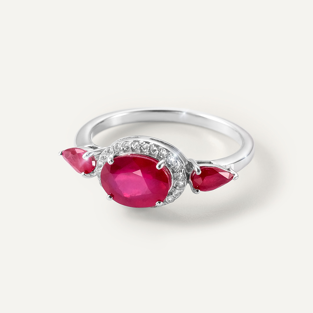 Серебряное кольцо с опалом и рубинами