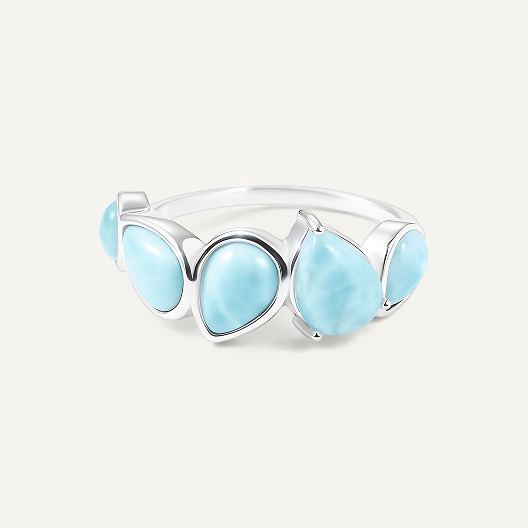 Серебряное кольцо с ларимаром и перламутром "Цветы"