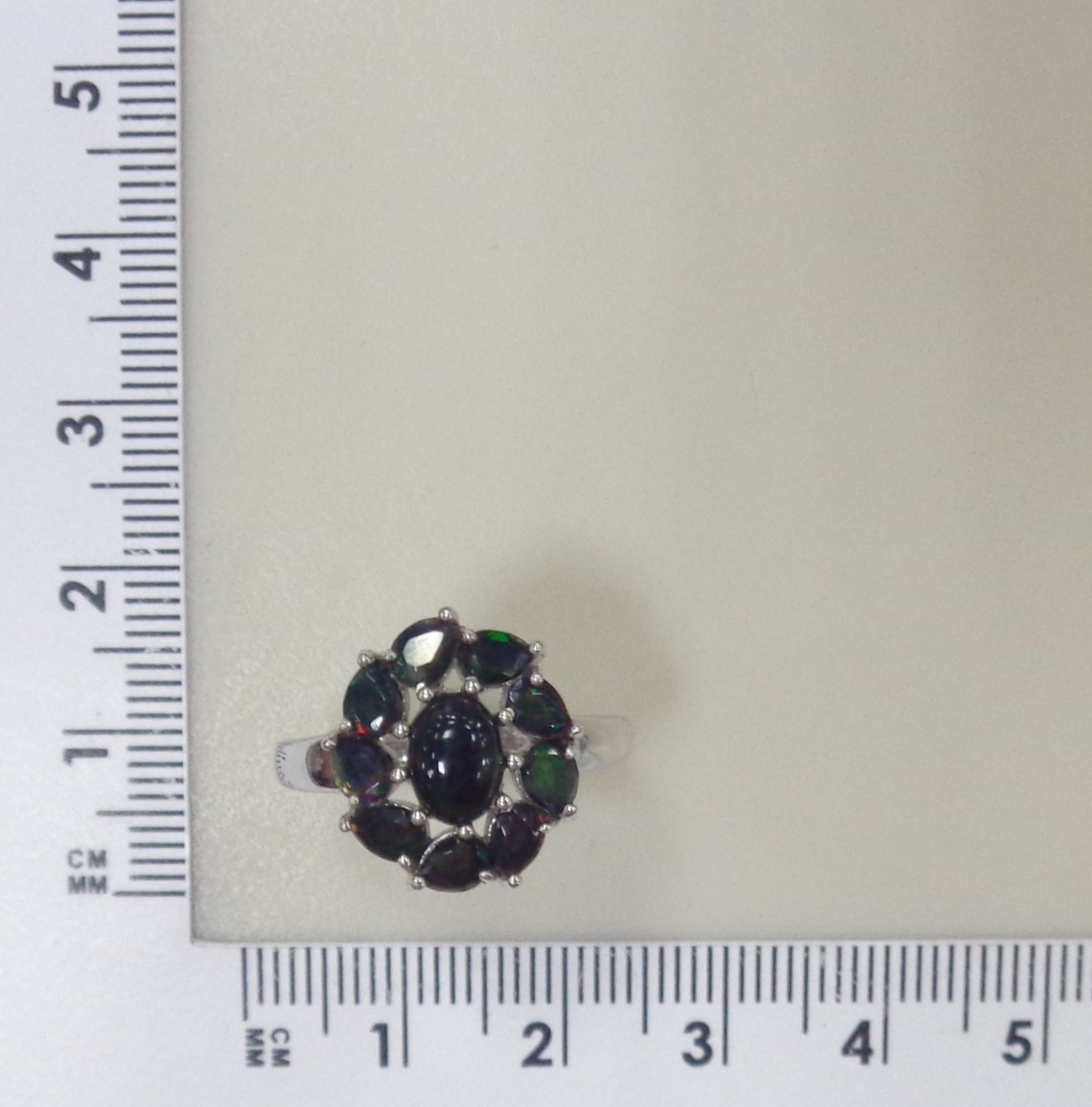 Серебряное кольцо с черными опалами "Цветок"