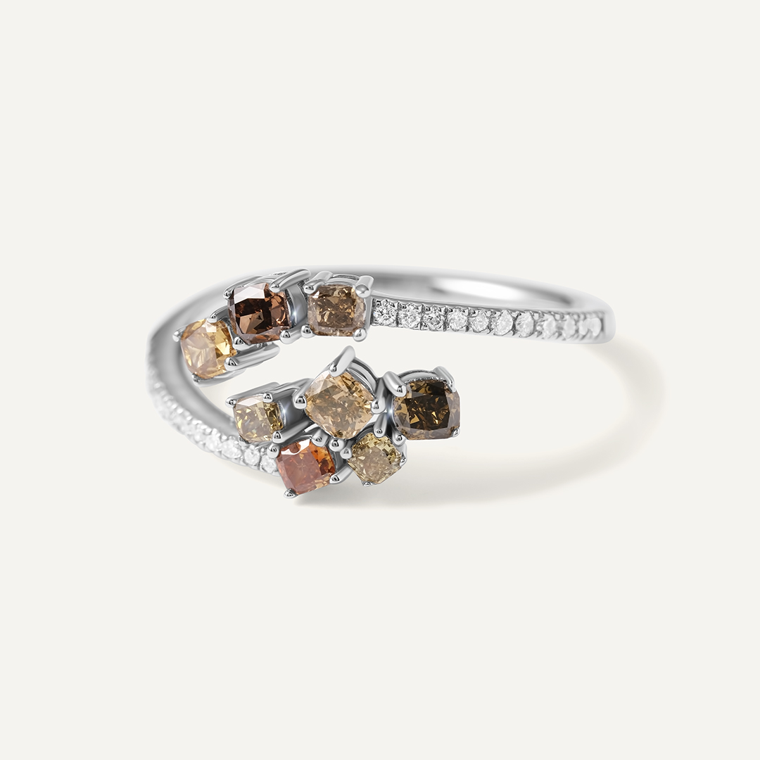 Кольцо из белого золота с цветными бриллиантами