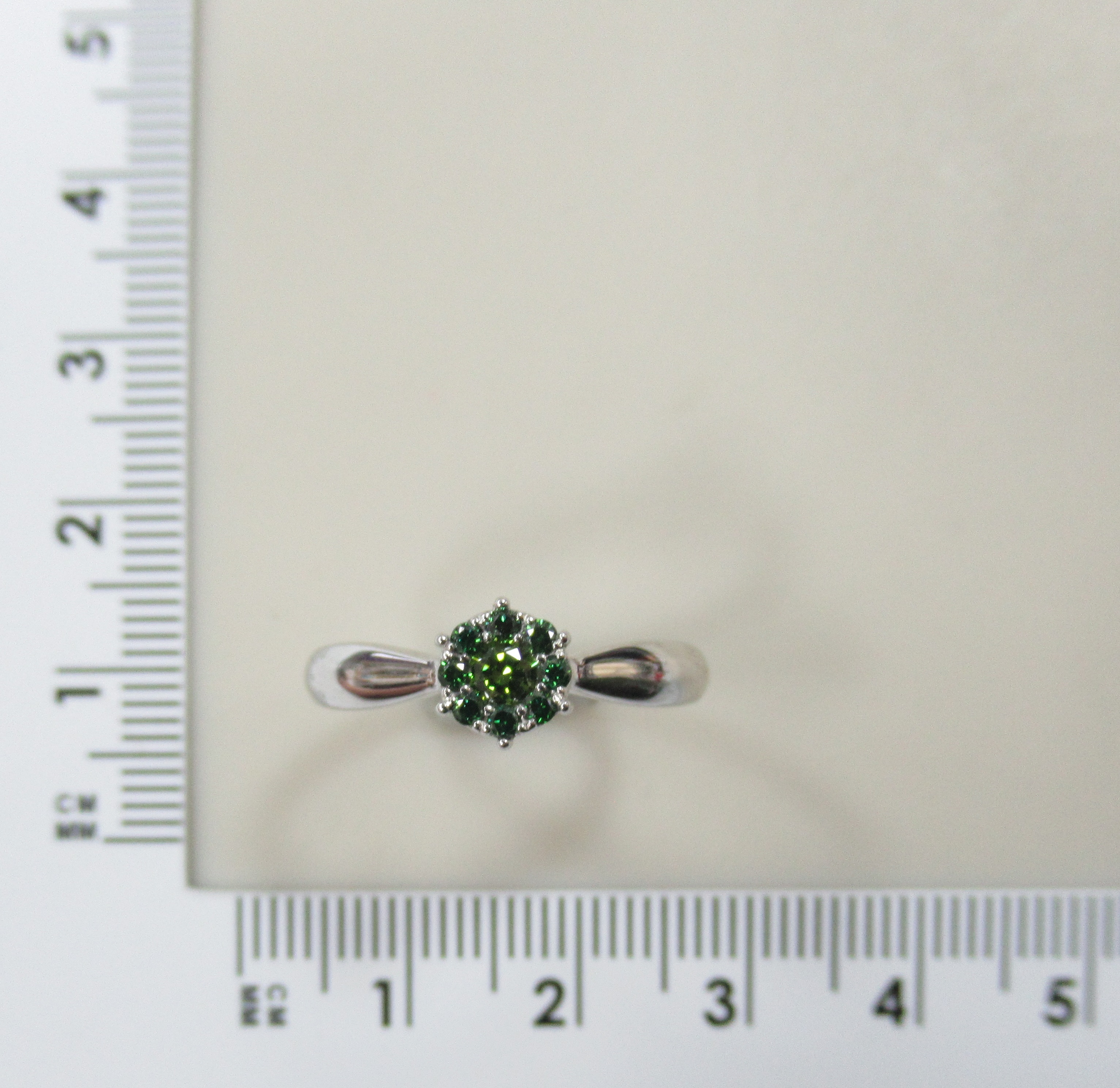 Кольцо из белого золота с зелеными бриллиантами