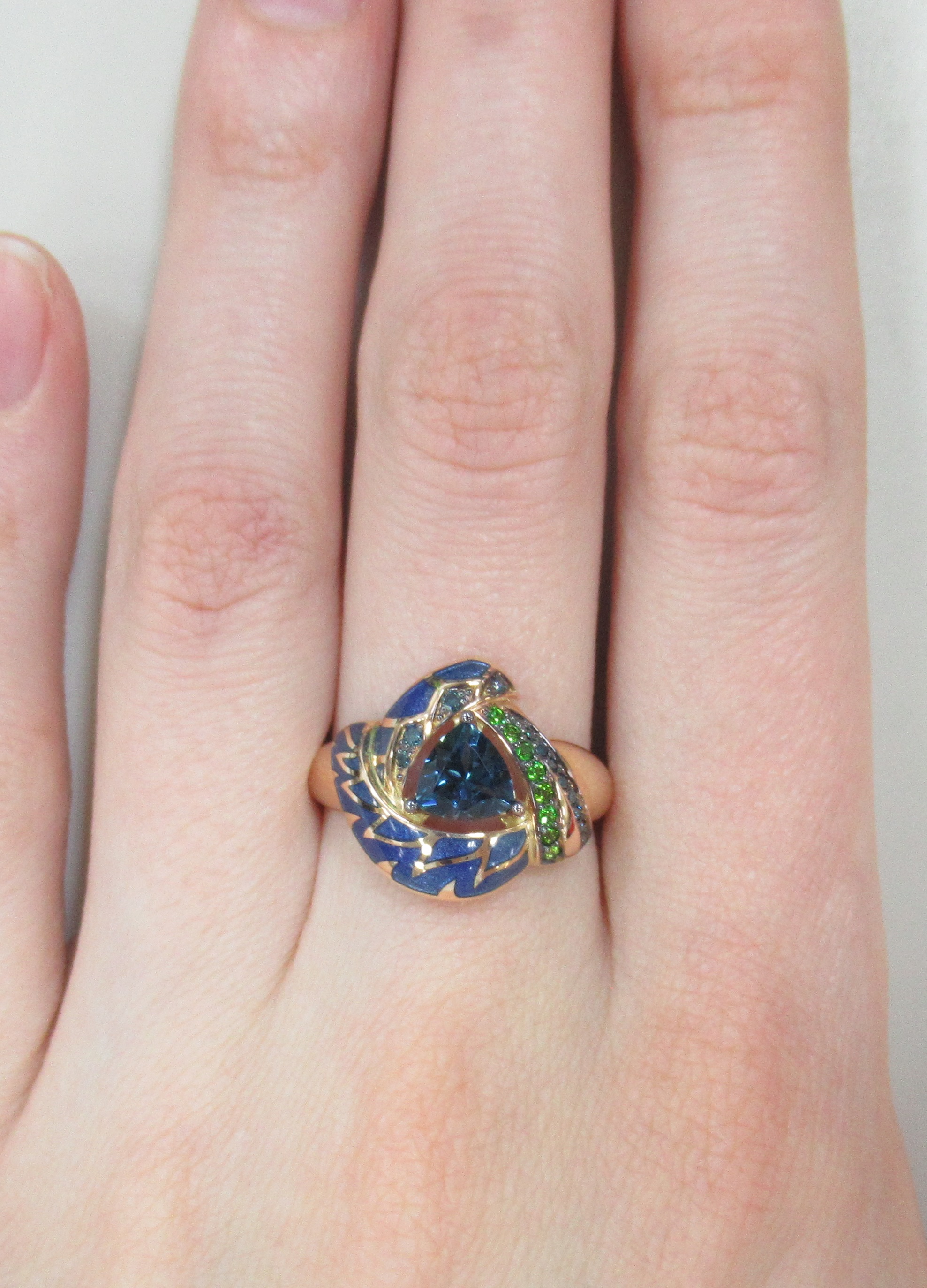 Золотое кольцо 585 пробы; родий; с подвесн. эл.; вставки 1 Бр.Кр-57 0,032 3/6А;