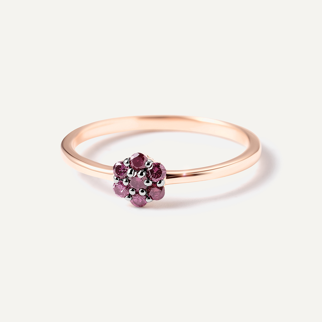 Серебряное кольцо с розовыми бриллиантами "Цветок"