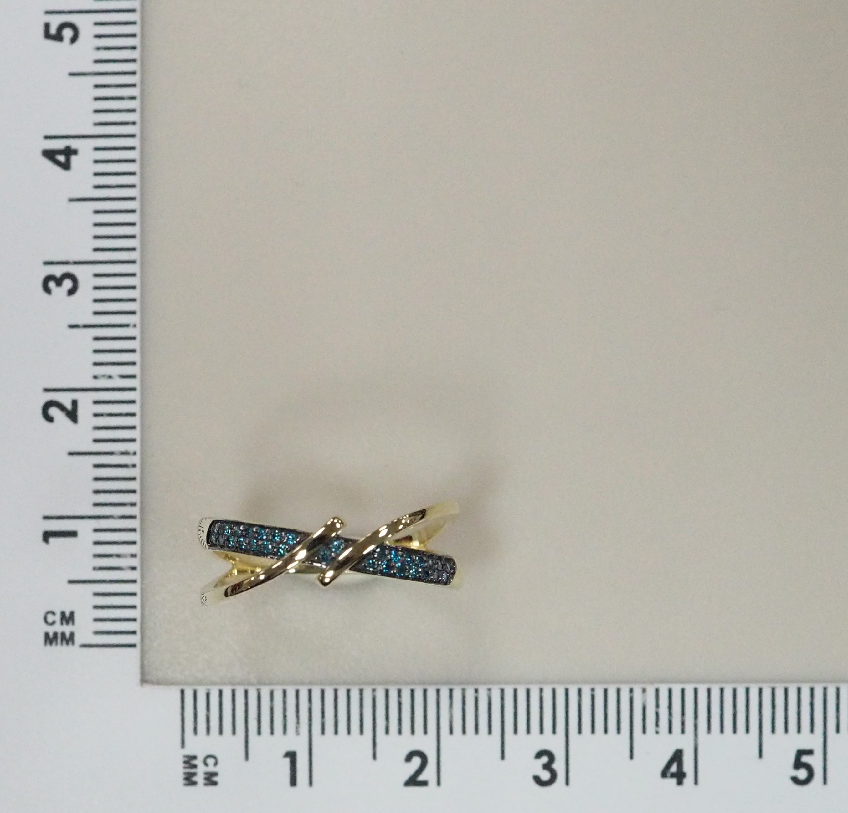 Кольцо из желтого золота с голубыми бриллиантами