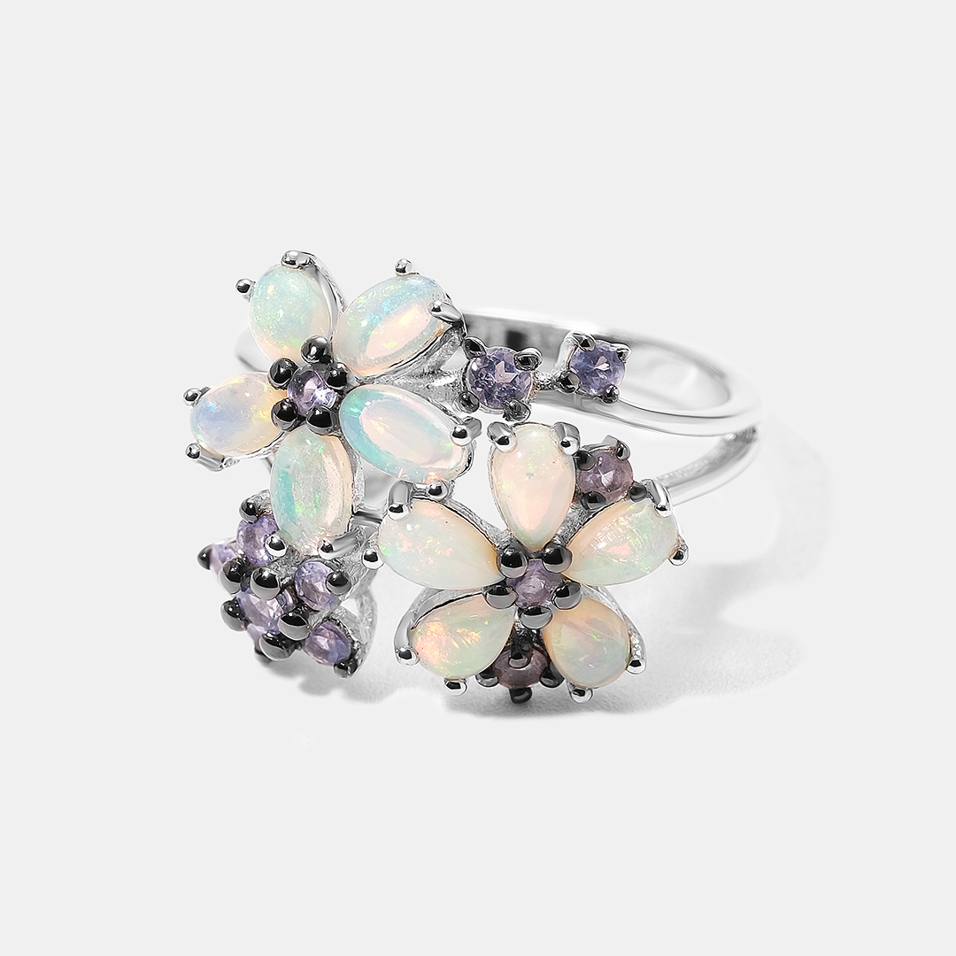 Серебряное кольцо с опалами и танзанитами "Цветы"