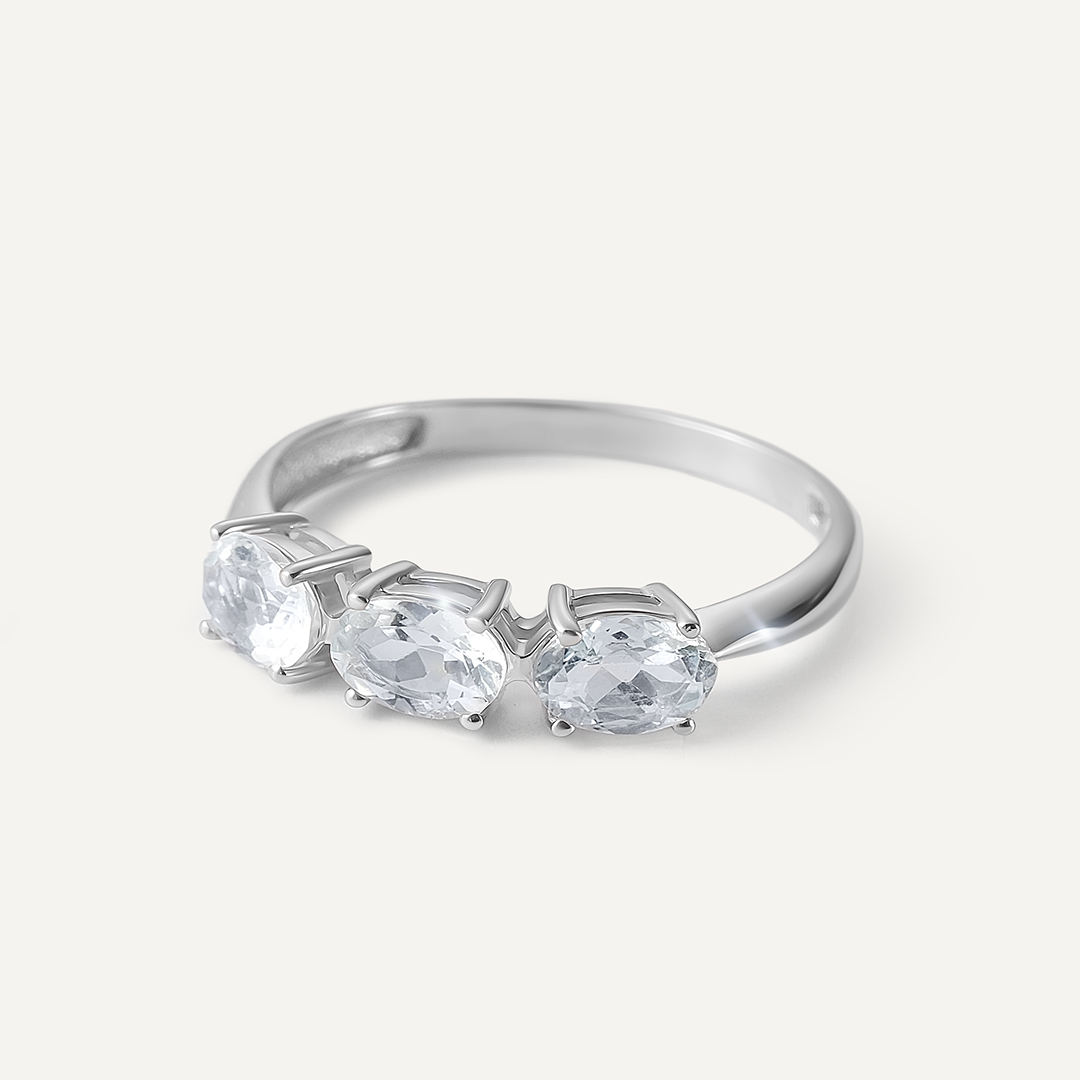 Серебряное незамкнутое кольцо с серым жемчугом и топазом