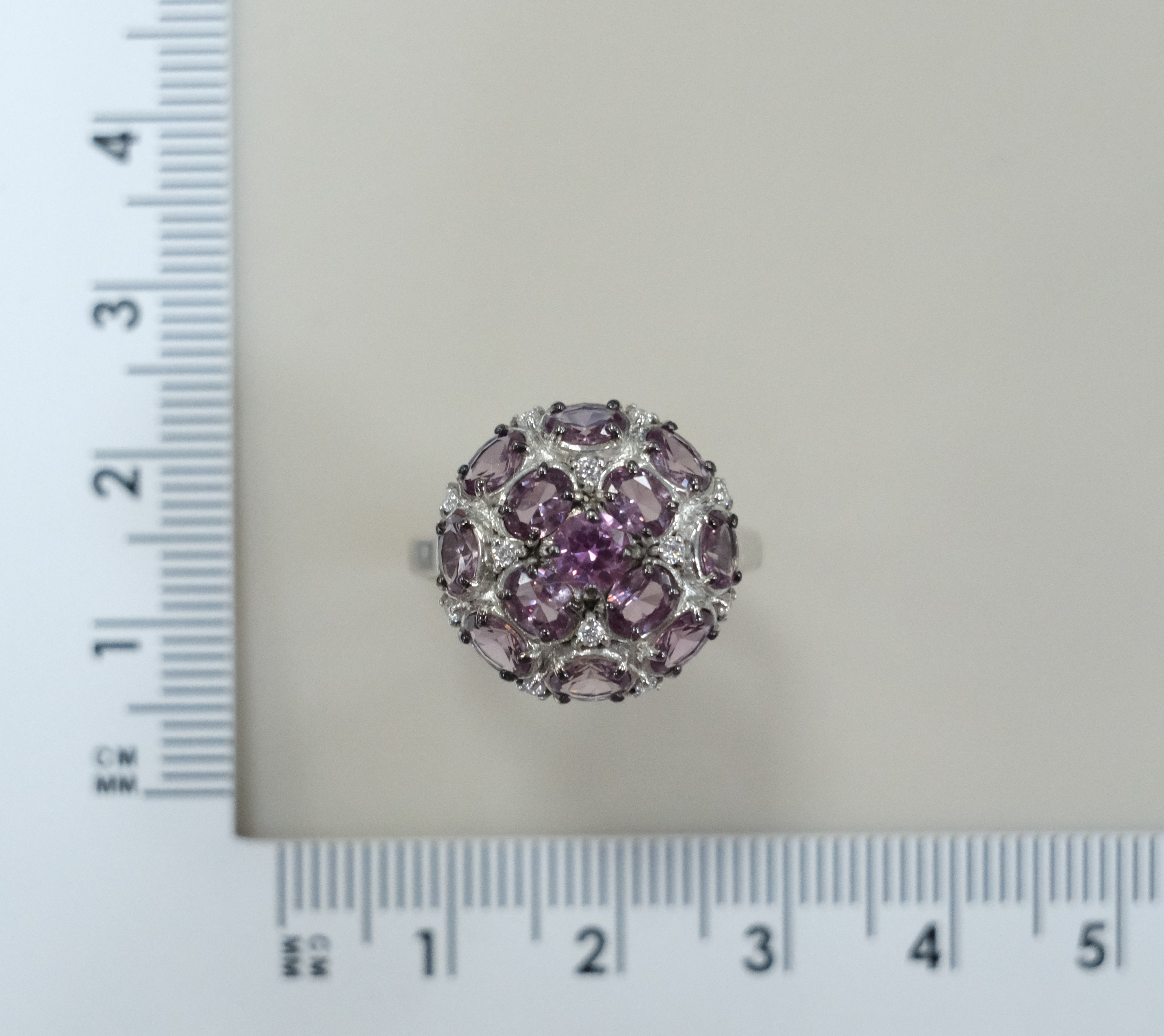 Серебряное кольцо с танзанитами и бриллиантом "Цветок"
