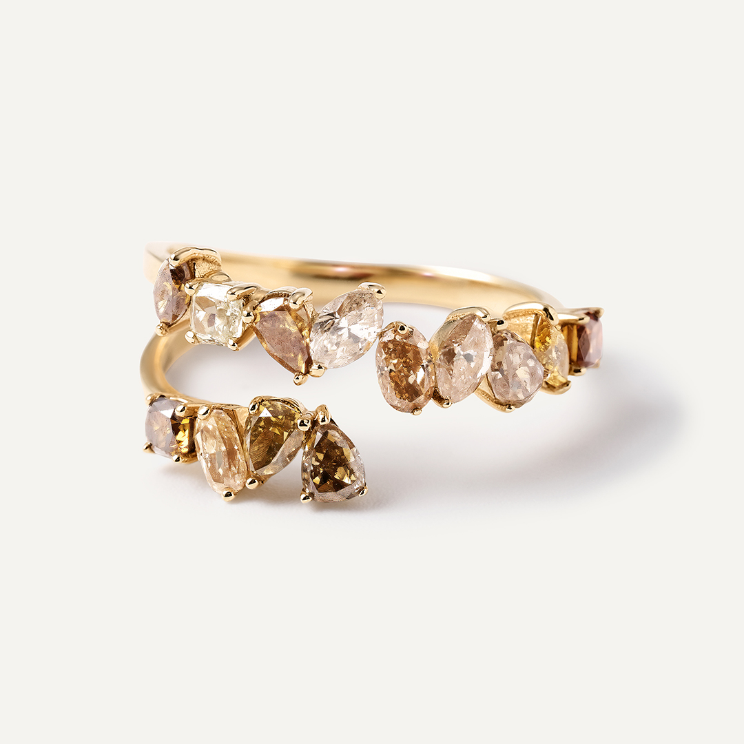Незамкнутое кольцо из желтого золота с бриллиантами