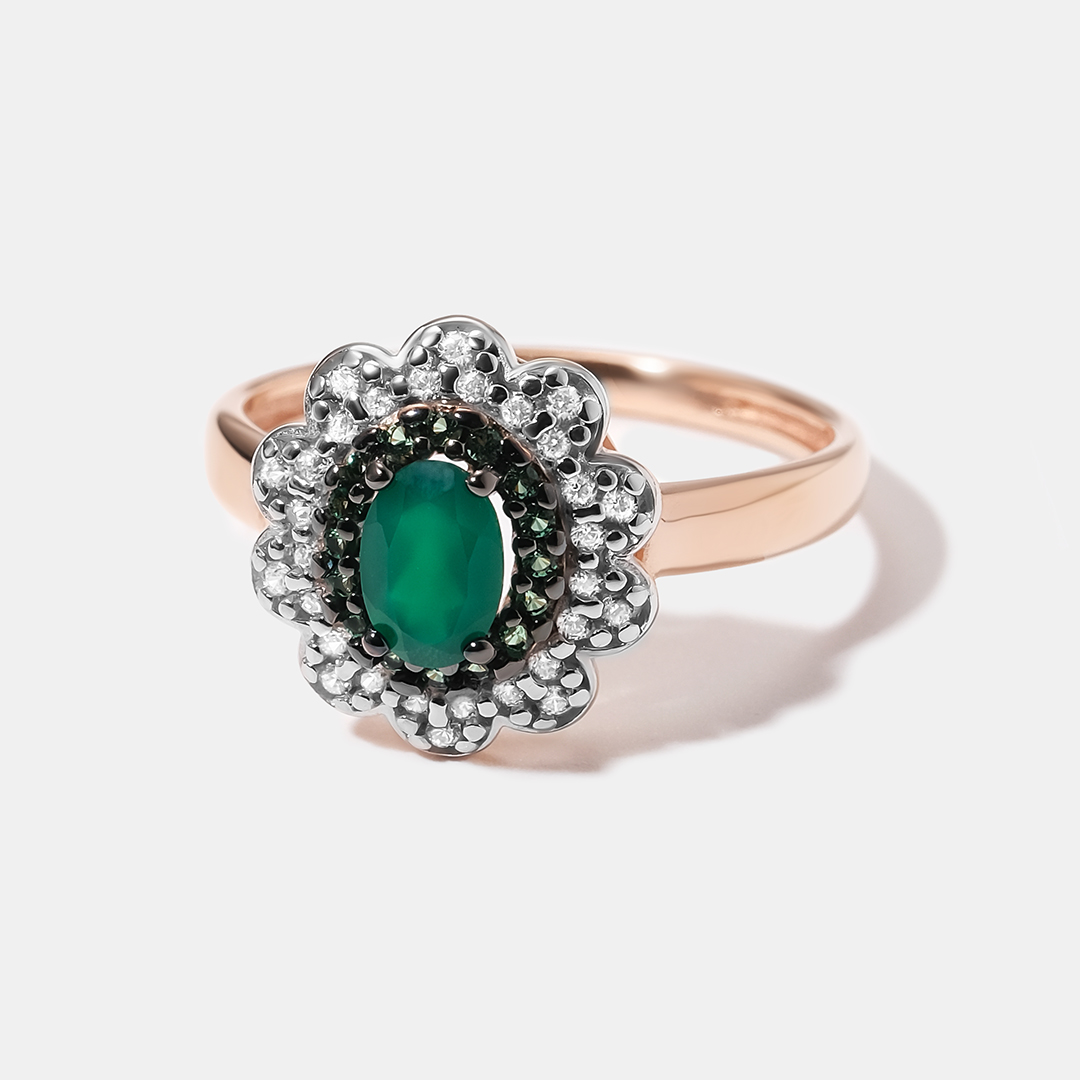 Серебряное кольцо с агатами "Цветок"