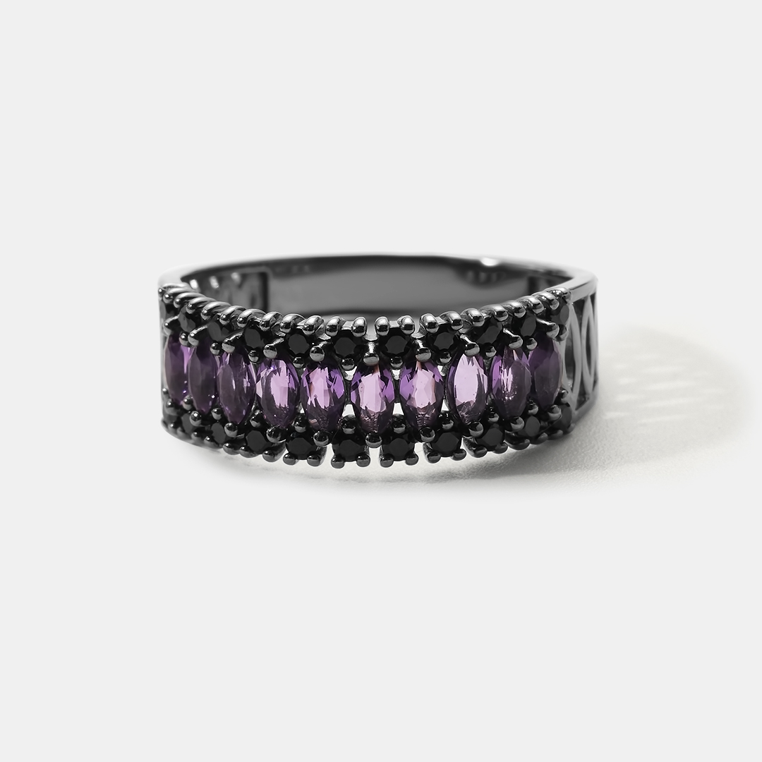 Серебряное кольцо с аметистами и перламутром "Цветы"