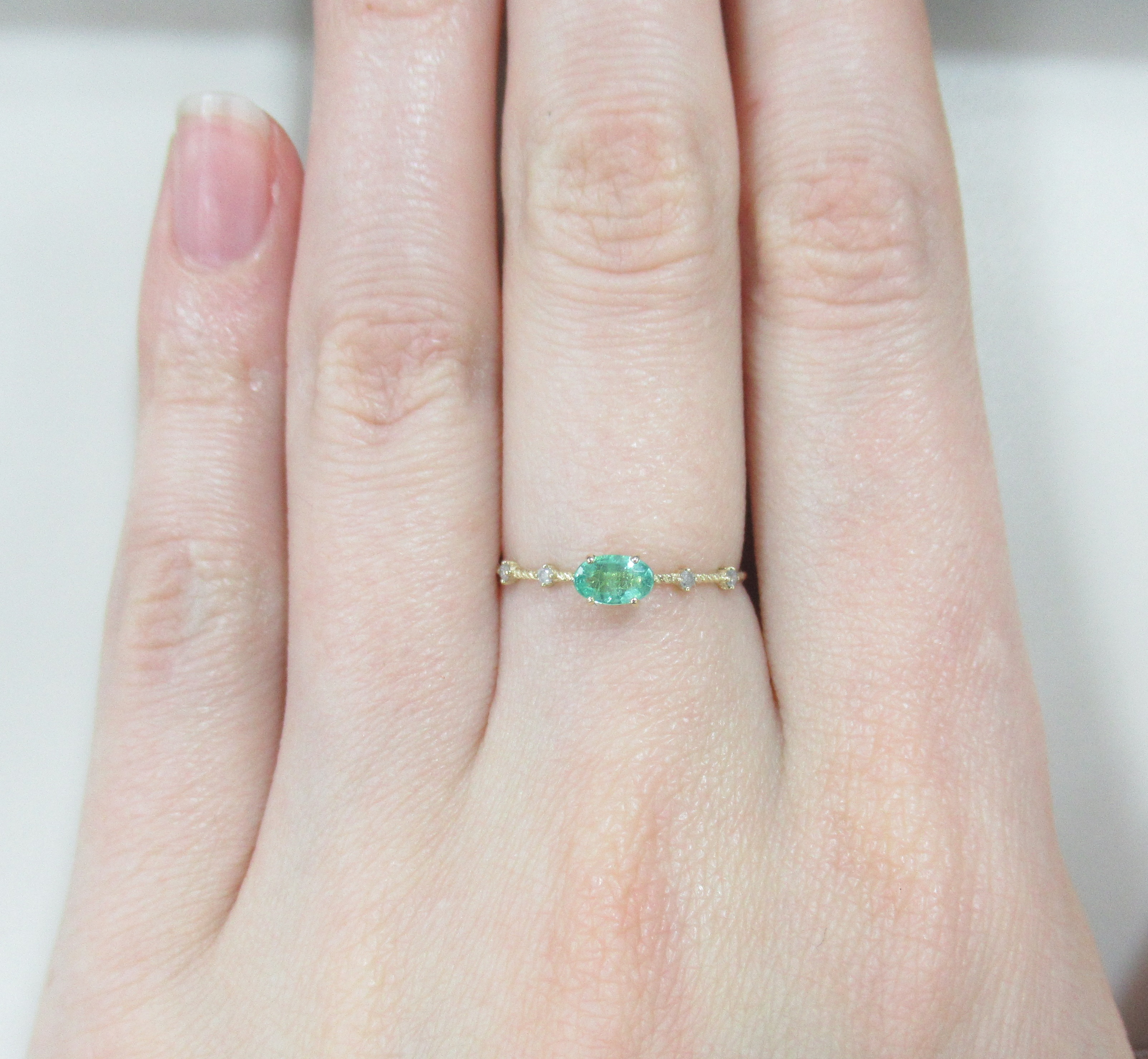 Кольцо из желтого золота с изумрудом и черным бриллиантом