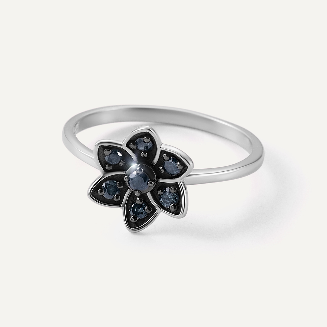 Серебряное кольцо с черными бриллиантами "Цветок"