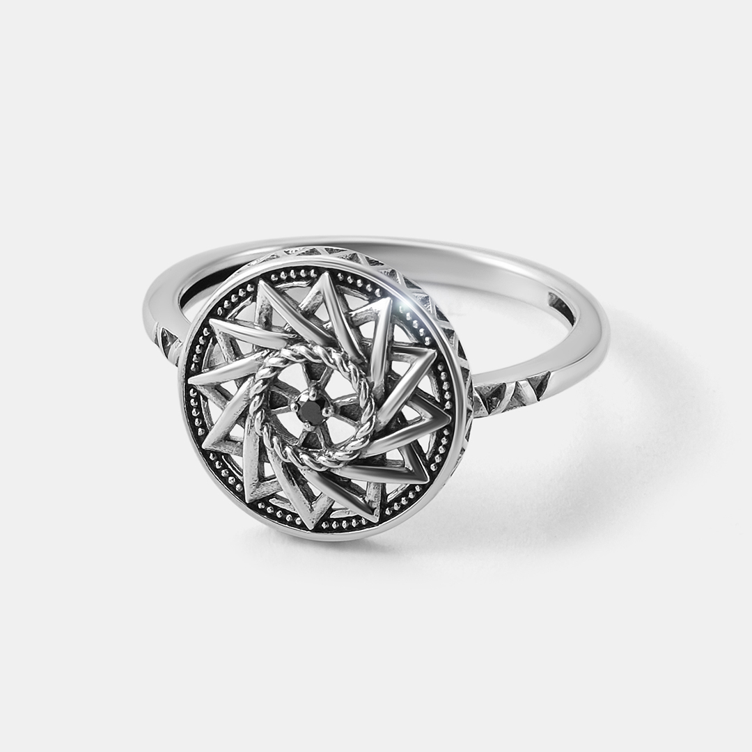 Серебряное кольцо с черным бриллиантом "Эрцгамма"