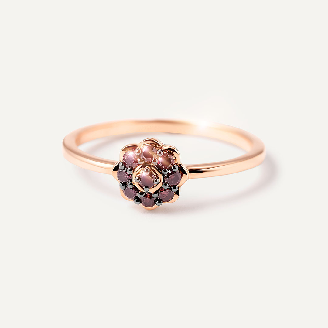 Серебряное кольцо с розовыми бриллиантами "Цветок"