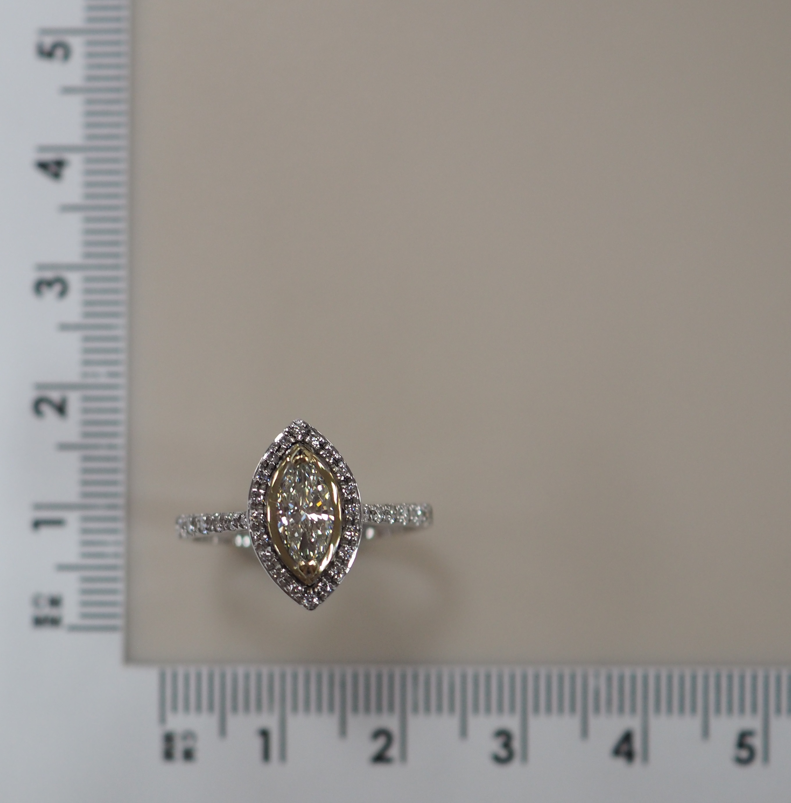 Золотое кольцо 585 пробы; белое золото; родий; вставки 1 Бр.Кр-57 0,106 3/6А; 16 Бр.Кр-57 0,082 3/6А