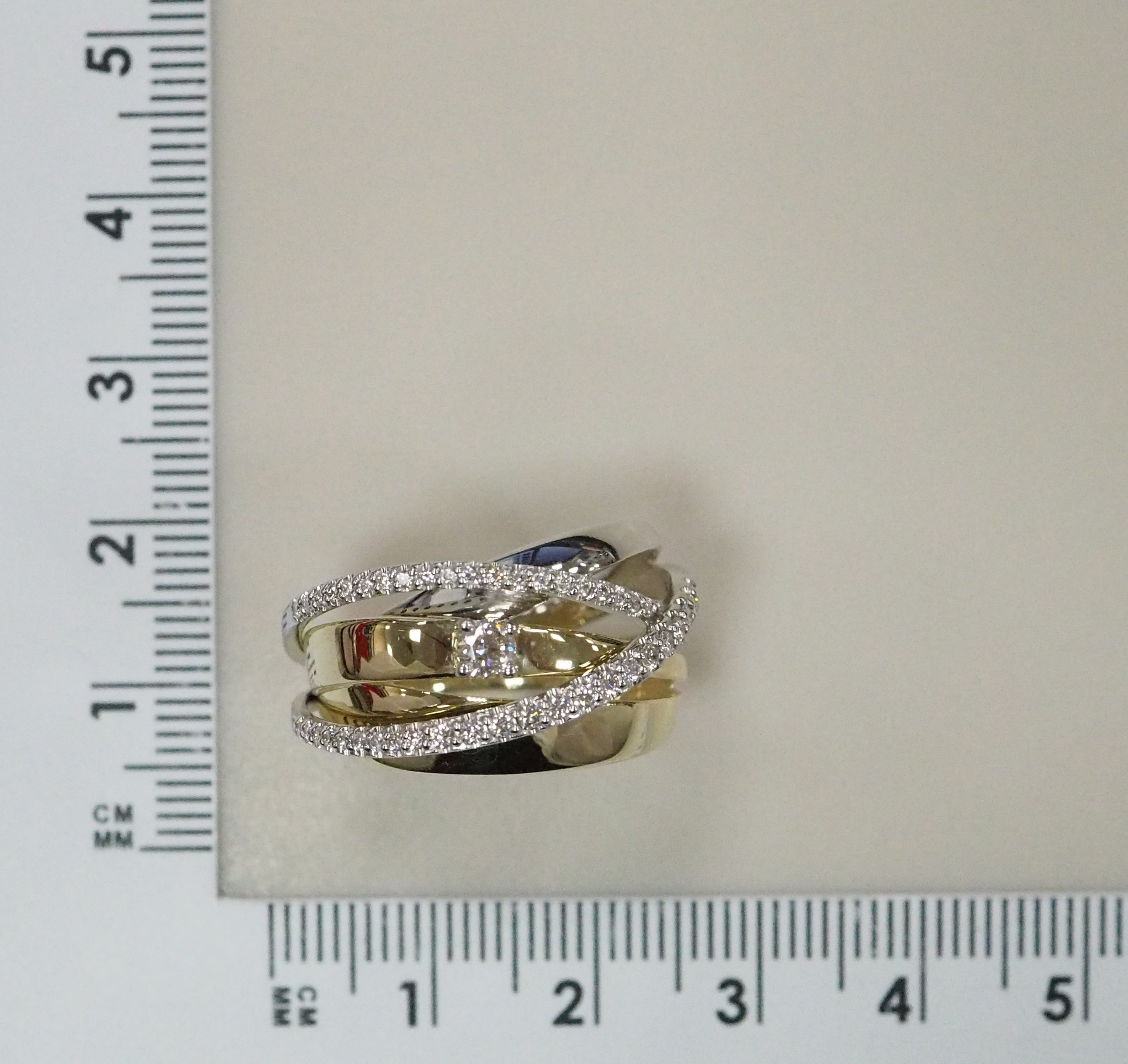 Золотое кольцо 585 пробы; красное, белое золото; родий; с алмазной обработкой; вставки 1 Бр.Кр-57 0,