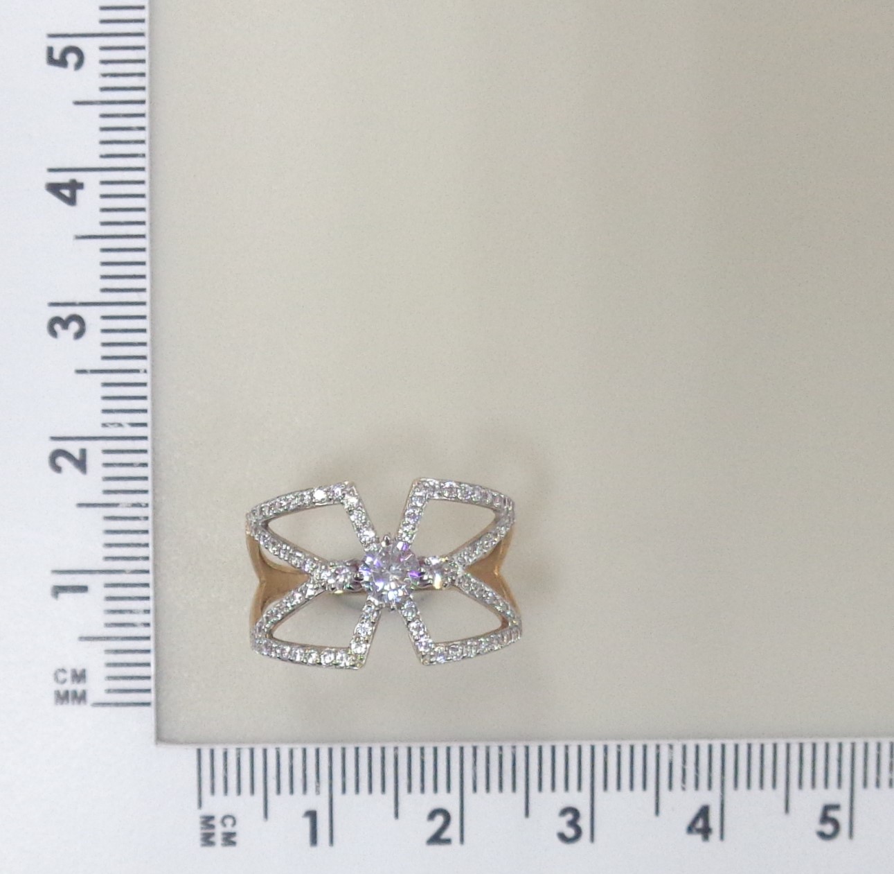 Золотое кольцо 585 пробы; родий; вставки 73 Фианит бесцв.;