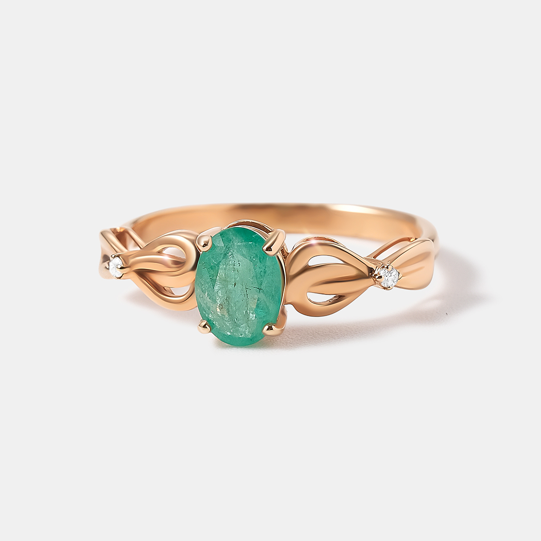 Кольцо из желтого золота с изумрудом "Бант"