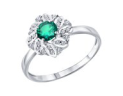 Серебряное кольцо с изумрудом и фианитами