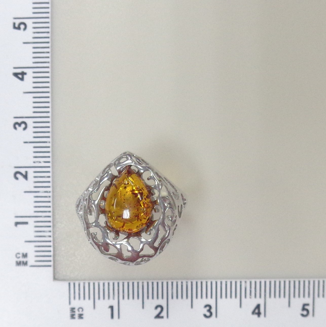 Серебряное кольцо с янтарем и эмалью "Цветы"