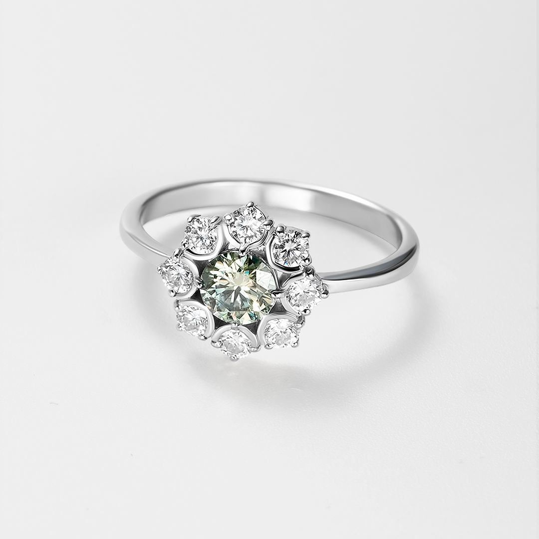 Серебряное кольцо с зелеными муассанитами "Иисусова молитва"