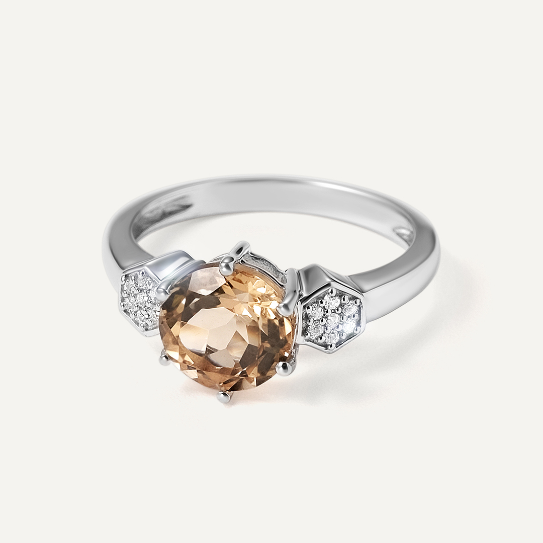 Серебряное кольцо 925 пробы; вставки 1 Топаз 0,95ct; 6 Куб.Цирконий бесцв. 0,06ct;