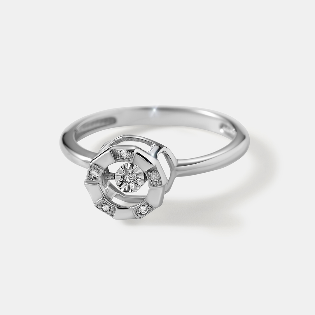 Серебряное кольцо с бриллиантами "Танцующий камень"