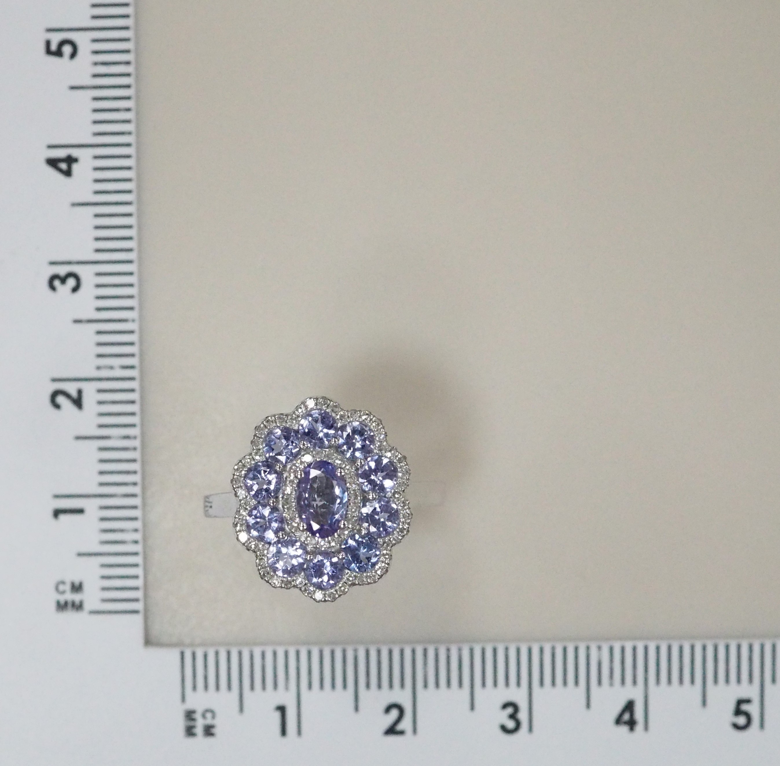 Золотое кольцо 585 пробы; родий черн.; вставки 3 Танзанит;