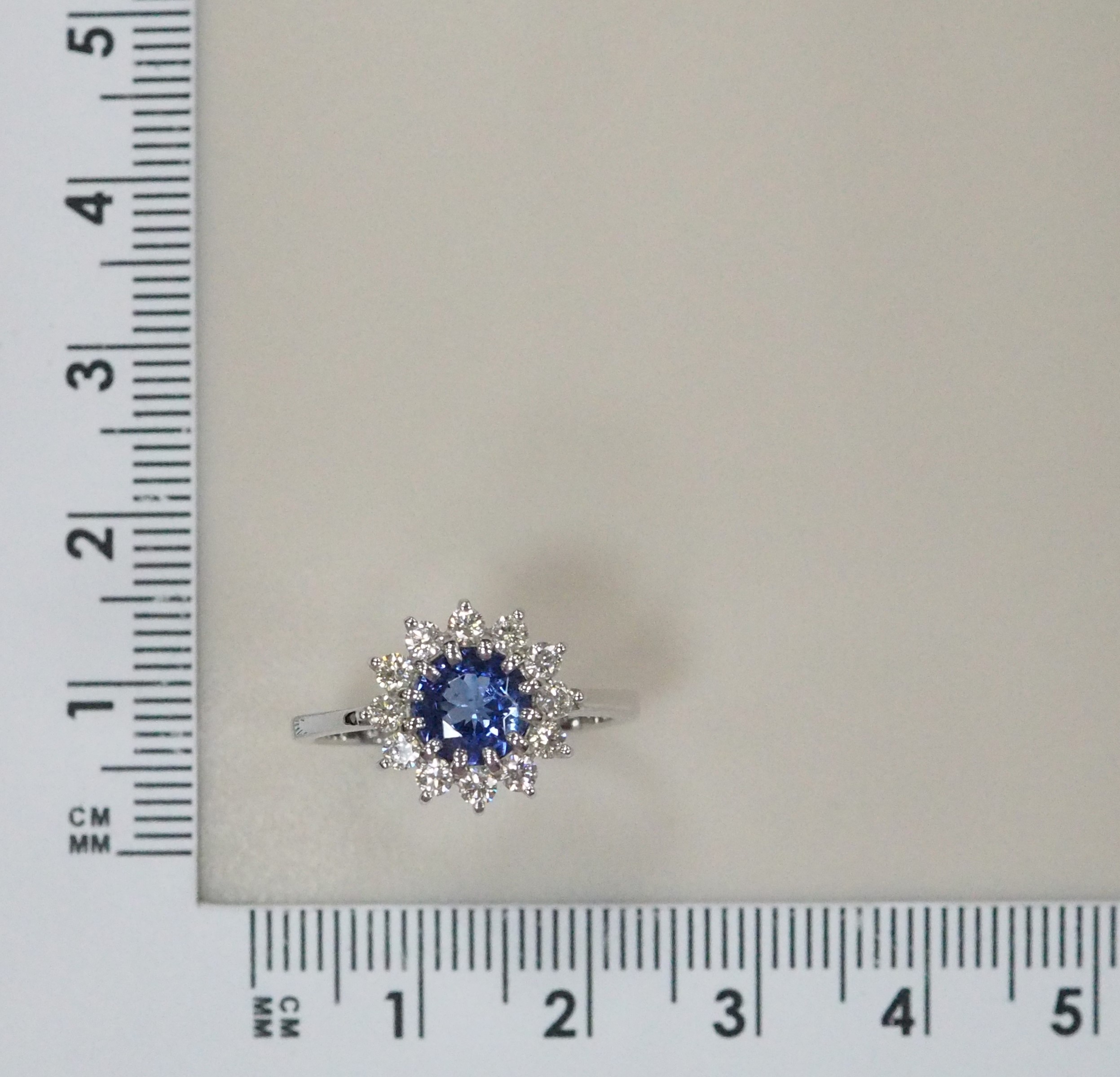Серебряное кольцо с танзанитами и бриллиантом "Цветок"