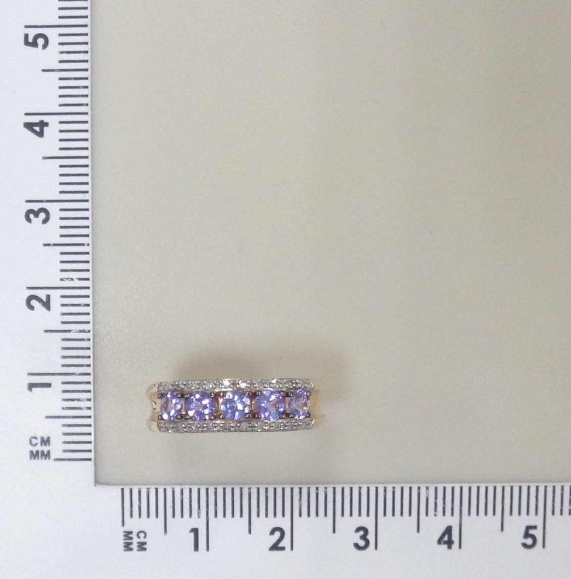 Золотое кольцо 585 пробы; родий (бел.,черн.); вставки 20 Бр.Кр-17 2/3А 0,099; 5 Танзанит;