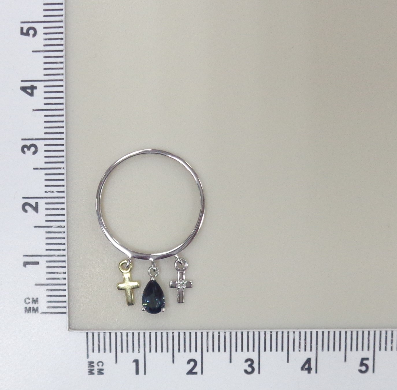 Золотое кольцо 585 пробы; родий; вставки 4 Бр.Кр-17 0,014 2/3А; 6 Топаз SWAROVSKI;